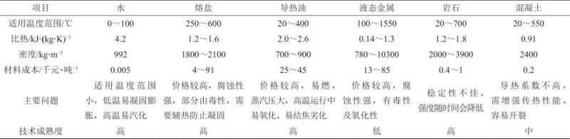 表1 顯熱儲熱材料特點
