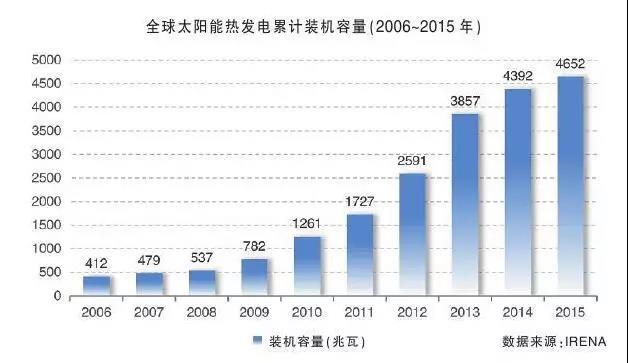 全球太陽(yáng)能熱發(fā)電市場(chǎng)呈現(xiàn)出美國(guó)、西班牙裝機(jī)總量領(lǐng)跑,新興市場(chǎng)裝機(jī)開始釋放,整個(gè)產(chǎn)業(yè)全球范圍蓬勃發(fā)展的局面。粗略算來(lái),截至2015年12月底,全球已建成投運(yùn)的光熱電站裝機(jī)容量已接近5吉瓦。