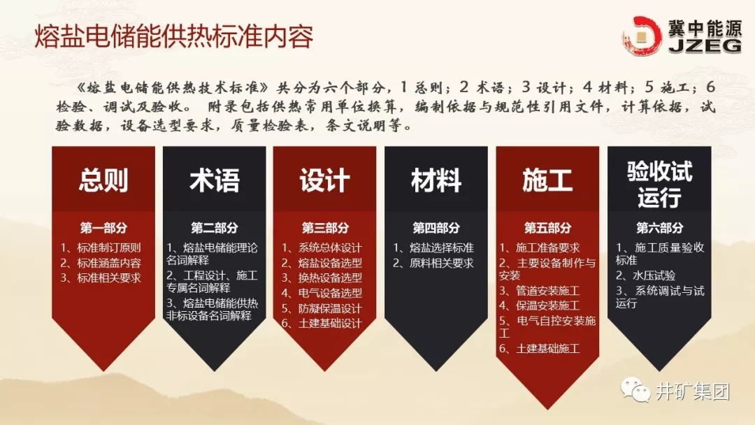 北京工業(yè)大學(xué)吳玉庭教授詳細(xì)介紹了標(biāo)準(zhǔn)編制單位、標(biāo)準(zhǔn)編制背景、標(biāo)準(zhǔn)編制過(guò)程、熔鹽電儲(chǔ)能專業(yè)術(shù)語(yǔ)體系、工藝設(shè)計(jì)要求、非標(biāo)設(shè)備制作要求以及施工、驗(yàn)收、試運(yùn)行等標(biāo)準(zhǔn)內(nèi)容。在認(rèn)真聽(tīng)取標(biāo)準(zhǔn)編制單位的匯報(bào)后,評(píng)審專家組對(duì)標(biāo)準(zhǔn)文本進(jìn)行了逐條審查,在文本規(guī)范、專業(yè)術(shù)語(yǔ)、技術(shù)細(xì)節(jié)、工程運(yùn)行效果等方面進(jìn)行了深入的討論,并提出了具體的修改意見(jiàn)。最后,評(píng)審專家組給出了評(píng)審意見(jiàn):冀中能源企業(yè)標(biāo)準(zhǔn)《熔鹽電儲(chǔ)能供熱技術(shù)規(guī)范》送審材料齊全,系統(tǒng)總結(jié)了冀中能源井礦集團(tuán)和北京工業(yè)大學(xué)在熔鹽儲(chǔ)能領(lǐng)域的理論研究、工程實(shí)踐經(jīng)驗(yàn),規(guī)范內(nèi)容對(duì)于熔鹽電儲(chǔ)能供熱應(yīng)用推廣具有重要作用,是國(guó)內(nèi)率先開(kāi)展的熔鹽儲(chǔ)能供熱系統(tǒng)標(biāo)準(zhǔn)化工作,具有前瞻性、先進(jìn)性和適用性,對(duì)國(guó)內(nèi)物理儲(chǔ)能供熱行業(yè)具有積極的指導(dǎo)和參考作用。專家一致同意該規(guī)范通過(guò)審查,建議根據(jù)專家意見(jiàn)修改完善后頒布實(shí)施,并希望冀中能源井礦集團(tuán)盡快以企業(yè)標(biāo)準(zhǔn)基礎(chǔ)申報(bào)行業(yè)標(biāo)準(zhǔn)。