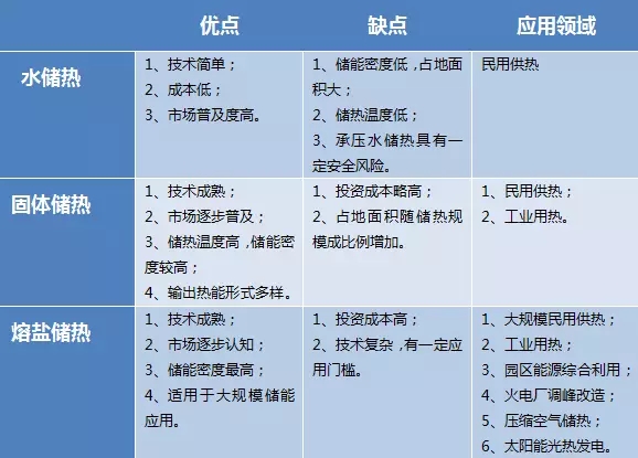 水儲熱、固體儲熱和熔鹽儲熱這3種儲熱技術(shù)的特點和應用領(lǐng)域可列表1如下所示:
