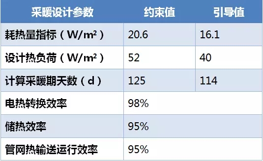 表:采暖設(shè)計熱指標約束值和引導值下的工程參數(shù)表