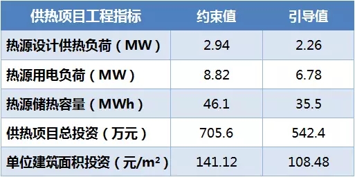 一般來說,供暖項目的投資成本取決于采暖建筑的供暖能耗水平,越節(jié)能的建筑需要供暖能耗越少,相應配置的供熱容量越小,供暖項目的投資成本和運營費用越低。以北京地區(qū)供熱面積為50000m2的住宅建筑冬季采暖設(shè)計為例,按照國家“民用建筑能耗標準(GB/T51161-2016)”的采暖指標約束值和引導值,分別估算固體儲熱電供暖項目的投資成本和經(jīng)營成本。