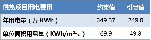 圖:采暖設(shè)計熱指標約束值和引導值下的耗電量對比表