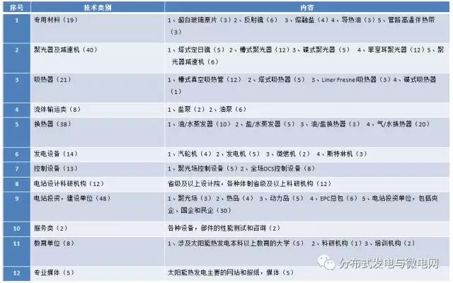 表1:太陽能熱發(fā)電產業(yè)鏈分類及廠家數(shù)量——截至2016年12月31日