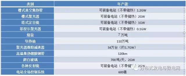槽式聚光器的有12家,產能1.5GW,1500萬平方米/年。