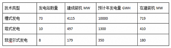 各種太陽能熱發(fā)電技術(shù)裝機容量和發(fā)電量統(tǒng)計(粗略統(tǒng)計,截至2016年2月)