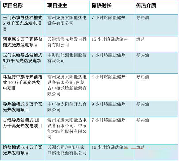 圖:中國首批光熱示范項目中的7個槽式項目的基本信息
