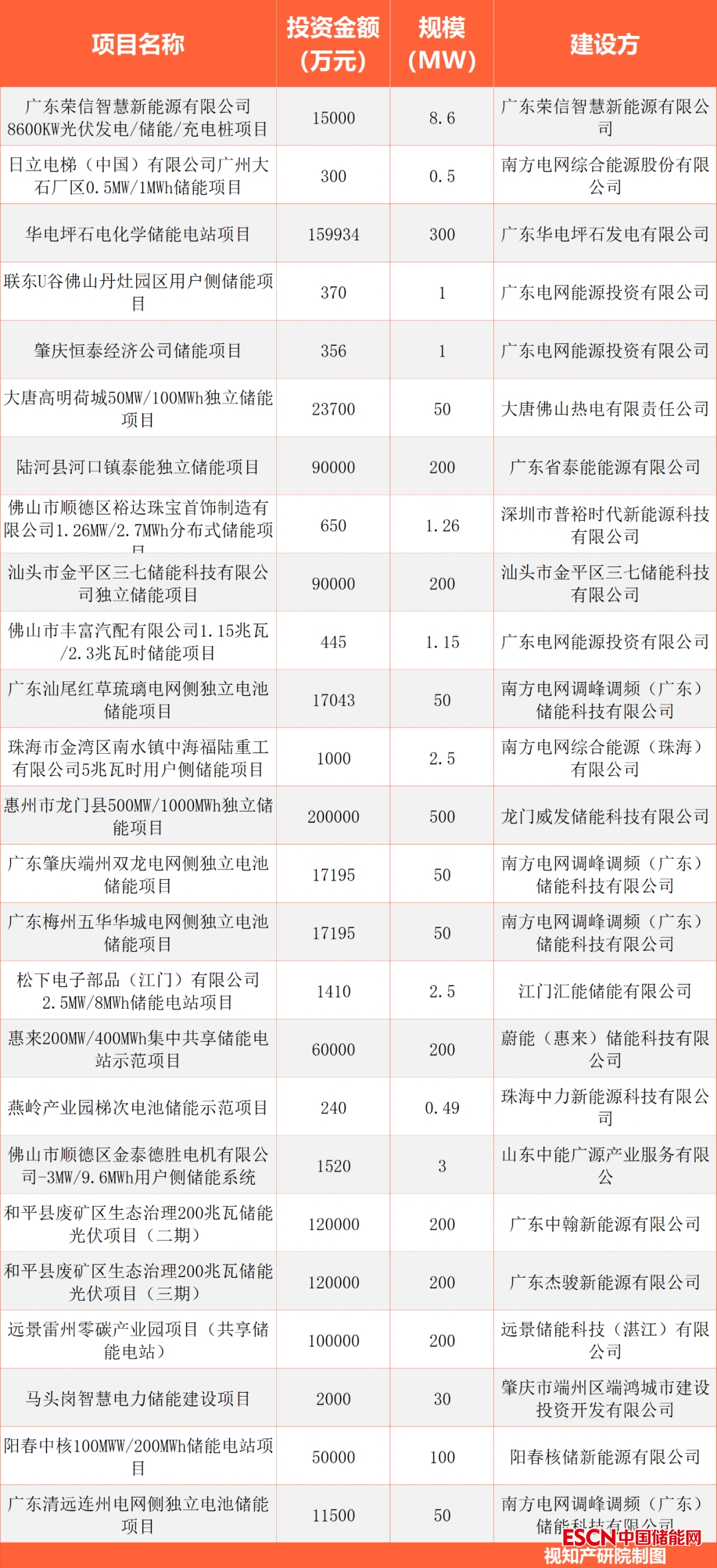 視知產研院登錄了廣東省投資項目在線審批監(jiān)管平臺,統(tǒng)計了2023年1月1日-3月21日公示的儲能項目(見下圖)。