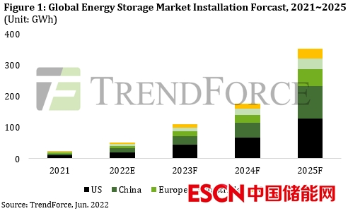 從目前各國(guó)儲(chǔ)能市場(chǎng)的增速來看,中國(guó)即將趕超歐美,主要增長(zhǎng)動(dòng)力來自發(fā)電系統(tǒng)。TrendForce認(rèn)為,中國(guó)新能源儲(chǔ)能將朝著規(guī)?;⑹袌?chǎng)化方向發(fā)展,形成以發(fā)電為主、政策驅(qū)動(dòng)、儲(chǔ)能強(qiáng)制、電網(wǎng)側(cè)(輸配電)、消費(fèi)側(cè)為補(bǔ)充的儲(chǔ)能格局。到2025年,中國(guó)儲(chǔ)能市場(chǎng)有望突破100GWh。