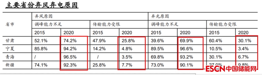 另一方面儲能可以解決西部地區(qū)棄風(fēng)棄電問題。我國風(fēng)光電資源最豐富的地區(qū)是西部,但是用電大戶都在東部,這就有一個資源與需求逆向分布的現(xiàn)象,所以過去為了保證“西電東送”的順利成功,國家大力建設(shè)了高壓輸電網(wǎng)絡(luò),如今“送”已經(jīng)不是困擾新能源消納的主要原因,調(diào)峰能力不足才是關(guān)鍵因素,而且隨著新能源裝機量的持續(xù)增長這個問題逐步加劇。