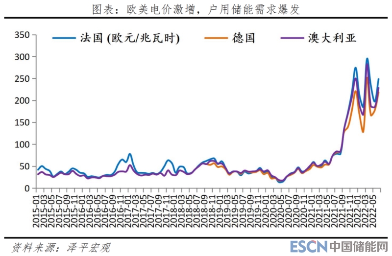 歐美戶(hù)儲(chǔ)場(chǎng)景拉動(dòng)新需求,全球用戶(hù)側(cè)儲(chǔ)能發(fā)展?jié)摿薮蟆?020年以來(lái),全球能源價(jià)格高漲,海外通脹高企、歐美電價(jià)大幅高增。在此背景下,居民用電成本居高不下,激化了海外戶(hù)用儲(chǔ)能需求爆發(fā)。根據(jù)IHS Markit數(shù)據(jù),2021年歐洲戶(hù)用儲(chǔ)能裝機(jī)達(dá)1717MWh,同比增長(zhǎng)60.2%。根據(jù)美國(guó)清潔能源協(xié)會(huì)ACP數(shù)據(jù),美國(guó)在2022年上半年新增5GWh電池儲(chǔ)能,同比增速超30%。通過(guò)“光伏+儲(chǔ)能”模式,戶(hù)用儲(chǔ)能大幅節(jié)省海外家庭購(gòu)電用電費(fèi)用。中國(guó)供應(yīng)商在全球戶(hù)用儲(chǔ)能系統(tǒng)中的光伏組件、逆變器、電池電芯等核心環(huán)節(jié)占據(jù)重要位置。2022年1-6月,太陽(yáng)能電池組件累計(jì)出口額223億美元,同比增長(zhǎng)96%;逆變器出口31億美元,同比增長(zhǎng)47%;鋰電池出口同比增長(zhǎng)75%以上。