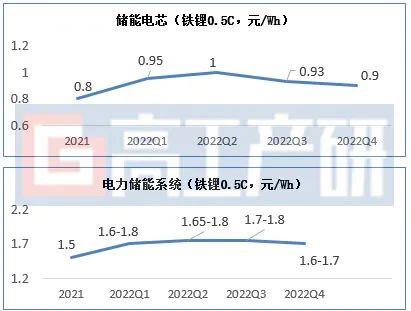 2022年儲能電芯及系統(tǒng)環(huán)節(jié)價格走勢