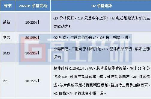 2022年H1國內(nèi)儲能產(chǎn)業(yè)鏈價格變動及H2走勢預測