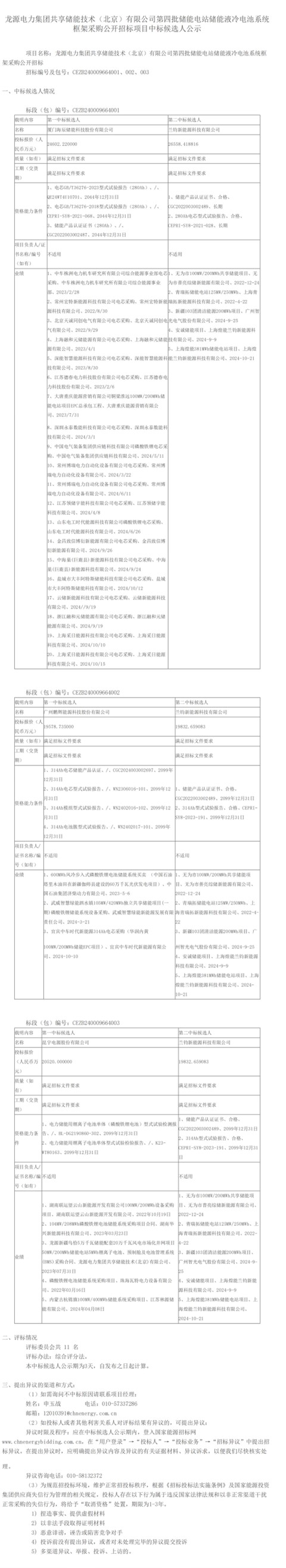 第一中標候選人:昆宇電源股份有限公司,投標報價20520萬元,折合單價0.456元/Wh;