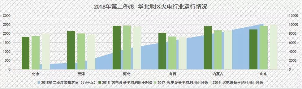 第二季度,華北地區(qū)總體處于較高水平,除北京以外,其余省份均超過2000小時,其中內(nèi)蒙古達到2429小時居于全國首位。與去年同期相比,華北地區(qū)火電設備平均利用小時數(shù)普遍實現(xiàn)增長,內(nèi)蒙古、山西,增幅高達229小時、207小時。值得關注的是,山東省第二季度火電設備平均利用小時數(shù)已經(jīng)連續(xù)三年下滑,下滑幅度高達197小時。