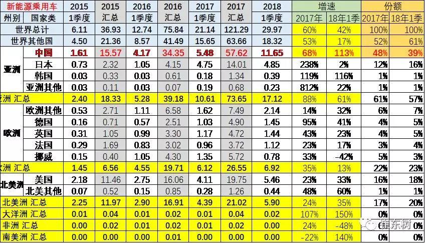 2018年的世界新能源車市場,主要體現(xiàn)為東亞地區(qū)的新能源車產(chǎn)品表現(xiàn)相對突出,尤其是中國的新能源車相對很強,比亞迪、北汽新能源車等表現(xiàn)均很好。特斯拉、寶馬等豪華車主力廠家的新能源表也是表現(xiàn)很好。