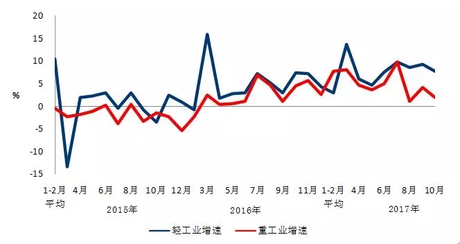 圖2 2015年以來分月輕、重工業(yè)用電量增速情況