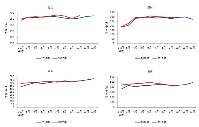 圖4 2016、2017年重點行業(yè)分月用電量情況