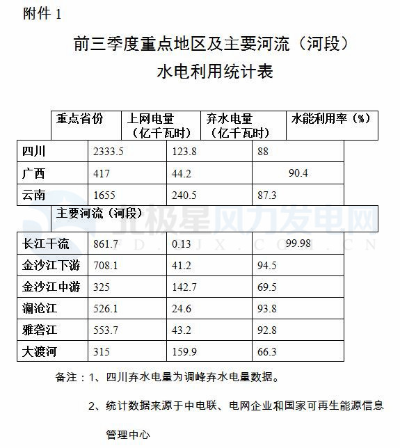 附件:1.前三季度重點地區(qū)及主要河流(河段)水電利用統(tǒng)計表