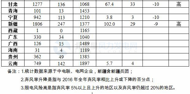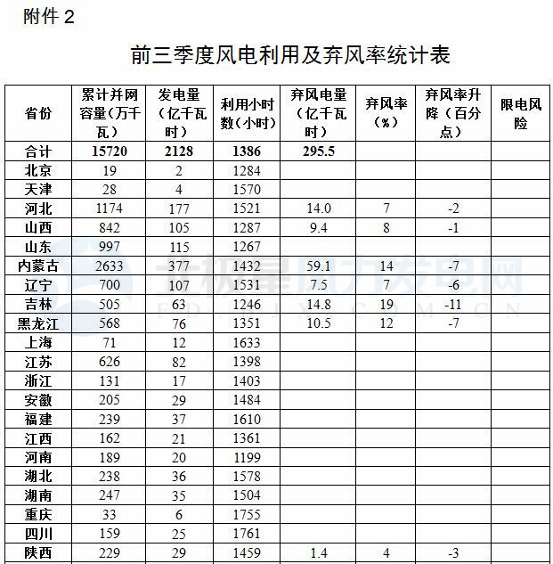 2.前三季度風電利用及棄風率統(tǒng)計表