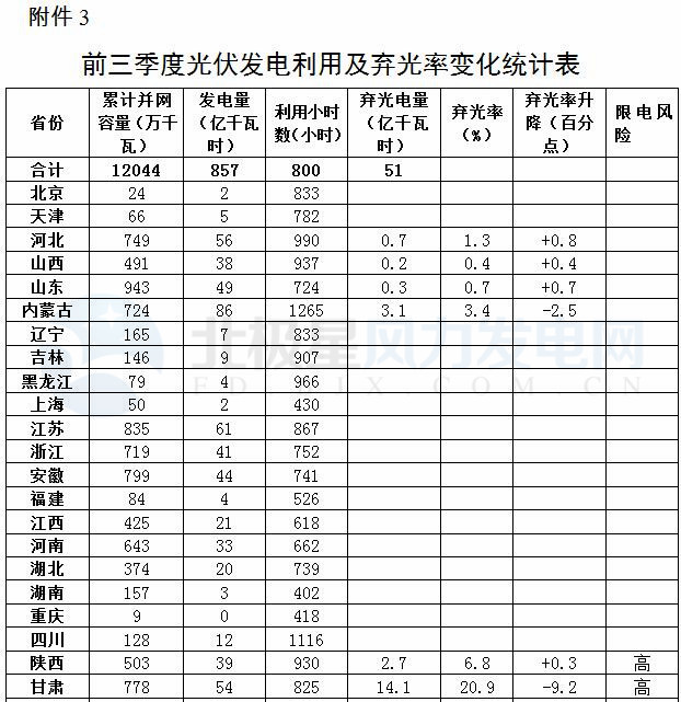 3.前三季度光伏發(fā)電利用及棄光率統(tǒng)計表
