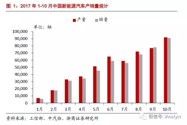 中國儲(chǔ)能網(wǎng)訊:2017年前10個(gè)月新能源車實(shí)現(xiàn)產(chǎn)量51.7萬輛