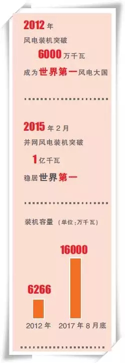 2017年6月底,我國風(fēng)電累計并網(wǎng)容量達(dá)1.54億千瓦,上半年風(fēng)電發(fā)電量已達(dá)1490億千瓦時,風(fēng)電發(fā)電量約占全國發(fā)電量的5.0%。