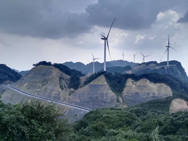 位于重慶萬盛的國內(nèi)首條高海拔風(fēng)力發(fā)電項目和旅游相結(jié)合的風(fēng)車公路。