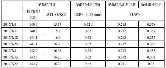 附表:2017年多晶硅光伏產(chǎn)業(yè)鏈各產(chǎn)品價格