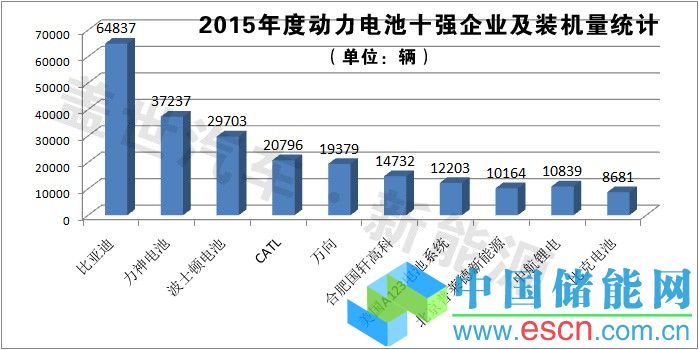 其中,純電動乘用車為150528輛,純電動客車為88248輛,純電動專用車為47778輛,插電式混合動力乘用車為63755輛,插電式混合動力客車為24048輛。筆者對上述新能源車輛動力電池供應(yīng)商進行了梳理,根據(jù)裝機量盤點出2015年度動力電池十強企業(yè)榜單。
