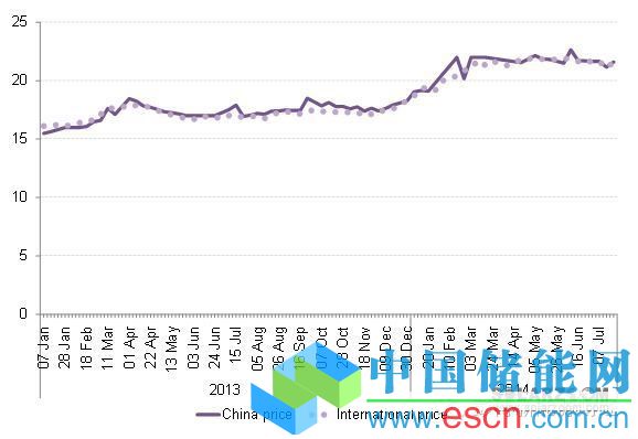 中國在今年4月底對產(chǎn)自歐盟的多晶硅也公布了高額反傾銷及反補(bǔ)貼稅率,但歐洲唯一一家大型多晶硅產(chǎn)商瓦克(Wacker)與中國政府達(dá)成了一個(gè)協(xié)議。該協(xié)議規(guī)定,只要瓦克出口到中國的多晶硅的價(jià)格不低于一個(gè)規(guī)定數(shù)值,就可以免收懲罰性關(guān)稅。雖然這一最低價(jià)格并未被官方公布,但BNEF預(yù)期其在23美元/公斤左右。2014上半年多晶硅價(jià)格穩(wěn)定在21-22美元/公斤,BNEF預(yù)期下半年隨著下游市場的上揚(yáng),多晶硅平均價(jià)格會(huì)升到23美元/公斤以上。所以對瓦克的最低價(jià)格限定并不能有效限制其在中國的出口。