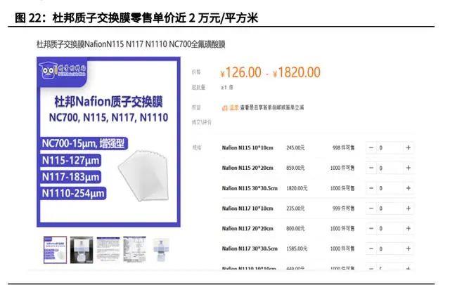 2)國產(chǎn)材料替代帶動成本下降 。在離子交換膜方面,目前全球釩電池主要使用美國杜邦公司的 Nafion 全氟 磺酸樹脂交換膜,Nafion 薄膜以磺酸基團(tuán)為交換基團(tuán),作為全釩氧化還原液流 電池的標(biāo)準(zhǔn)隔膜,其在電解液中的穩(wěn)定性高,但價格昂貴,據(jù)阿里巴巴 1688 網(wǎng), 零售單價近 20000 元/平方米。目前,國內(nèi)的科潤、東岳、中科院大化所,國外的戈爾等都在自主創(chuàng)新開發(fā) 了更低成本的膜。隨著國產(chǎn)離子交換膜的逐步推廣,膜等產(chǎn)品仍有較大成本下降 空間,預(yù)計后續(xù)在其他電堆材料(雙極板、碳?xì)值龋┮灿谐杀緝?yōu)化空間。