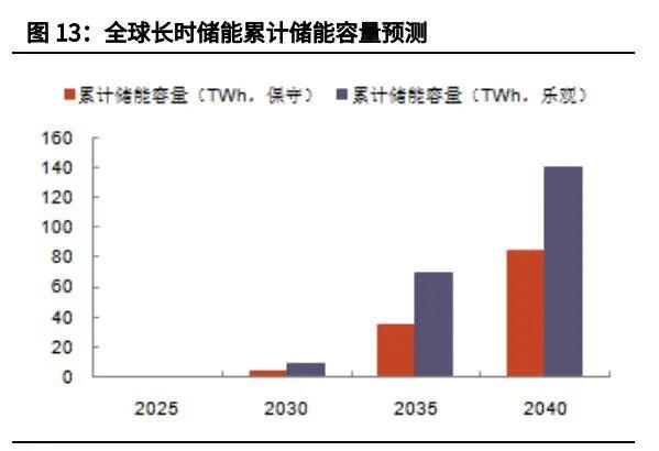 長時儲能 2040 年累計裝機(jī)量將達(dá) 1.5-2.5TW ,累計投資規(guī)模達(dá) 1.5-3 萬億 美元