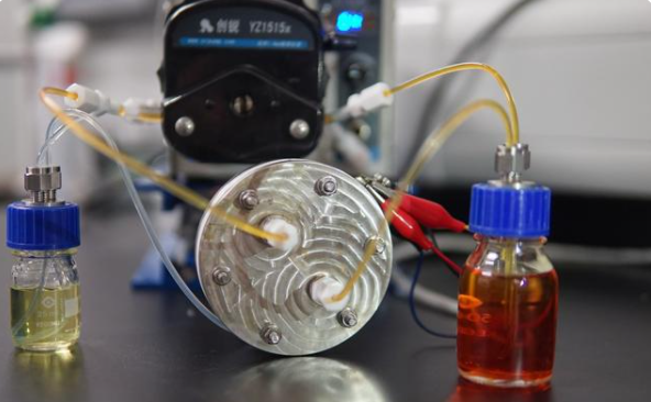 水系液流電池是一種新穎的儲能技術(shù),由兩種處于溶液態(tài)的電解液通過離子交換來產(chǎn)生電能。相比傳統(tǒng)鋰離子電池,液流電池的優(yōu)勢在于安全、電量輸出功率大、設(shè)計靈活,適合用于風(fēng)能、太陽能等再生能源的電網(wǎng)儲能裝置,以及可快速換電的電動交通工具等。然而,液流電池的能量密度低且成本高,較難應(yīng)用于大型電網(wǎng)儲能技術(shù)。