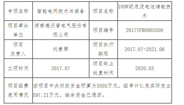 中國儲能網(wǎng)訊:根據(jù)《國家重點(diǎn)研發(fā)計劃管理暫行辦法》《關(guān)于國家重點(diǎn)研發(fā)計劃項目調(diào)整有關(guān)事項的通知》等文件有關(guān)規(guī)定,現(xiàn)對國家重點(diǎn)研發(fā)計劃“智能電網(wǎng)技術(shù)與裝備”重點(diǎn)專項“10MW級液流電池儲能技術(shù)”項目終止信息進(jìn)行公示。