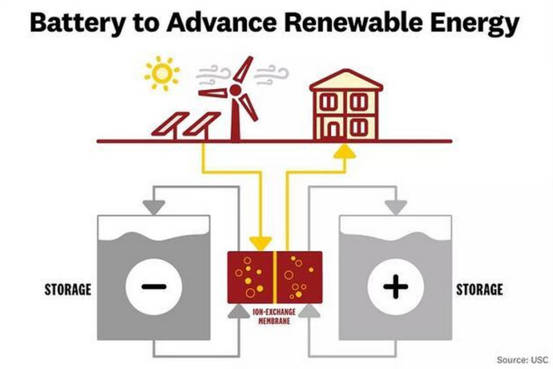 液流電池原理圖(來自:USC)