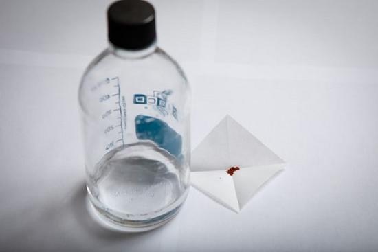 手托一瓶BODIPY超級染料的博士生Kosswattaarachchi。