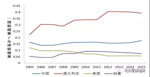 圖4、主要國家鉛儲(chǔ)量占比走勢(shì)圖