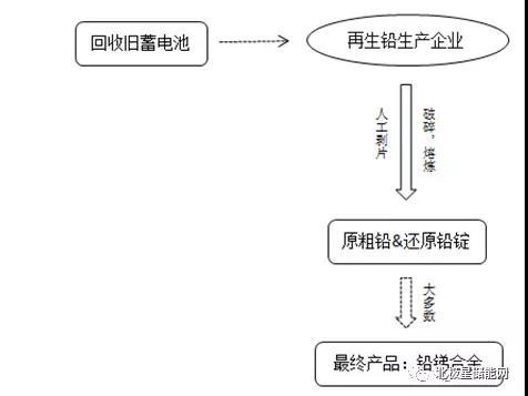 再生鉛的生產(chǎn)流程大致如下:回收使用過的蓄電池,進(jìn)入再生鉛生產(chǎn)企業(yè)。經(jīng)過人工剝片、破碎以及熔煉等步驟,得到還原粗鉛和還原鉛錠,最后大多加工成鉛銻合金。