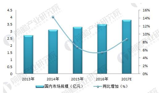 圖表4:2013-2016年中國鐵路機(jī)車用蓄電池行業(yè)市場(chǎng)規(guī)模變化趨勢(shì)(單位:億元,%)