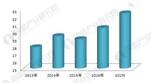 圖表3:2013-2016年全球鐵路機(jī)車用蓄電池行業(yè)市場(chǎng)規(guī)模變化趨勢(shì)(單位:億元)