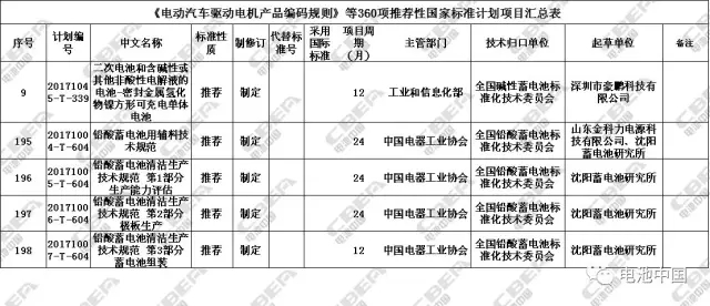 在發(fā)布的標準修訂計劃中,與電動汽車相關(guān)的推薦性標準13項,堿性蓄電池、鉛蓄電池相關(guān)的推薦性標準共5項。