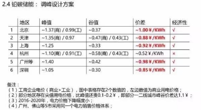 我專門算了一下利用鉛炭?jī)?chǔ)能做削峰填谷設(shè)計(jì)方案的案例,鄭丹丹主持人之前提到,全國(guó)五大地區(qū)有比較高的峰值差價(jià),只有五大地區(qū)是有超過0.85元、0.82元、0.88元的峰谷差價(jià),只有超過0.8元以上才會(huì)調(diào)峰,削峰填谷才有合作。杭州0.5元都是沒得做的,投資回報(bào)期都會(huì)很長(zhǎng)。這里列出北京、天津、上海、杭州、廣州、深圳的范圍。
