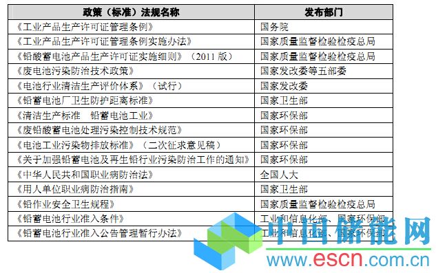 中國儲(chǔ)能網(wǎng)訊:二次電池行業(yè)所涉及的法律法規(guī)主要包括生產(chǎn)許可和環(huán)境保護(hù)兩個(gè)方面。其中,國家質(zhì)檢總局負(fù)責(zé)實(shí)施生產(chǎn)許可證制度,鉛酸蓄電池生產(chǎn)過程中的環(huán)保不達(dá)標(biāo)被列為關(guān)注重點(diǎn),任何環(huán)保設(shè)施不健全,或雖有設(shè)施、但環(huán)境監(jiān)測不合格的企業(yè)均將失去生產(chǎn)該類產(chǎn)品的資格;國家環(huán)保部負(fù)責(zé)行業(yè)環(huán)?;局贫燃案黜?xiàng)環(huán)保政策、法規(guī)和標(biāo)準(zhǔn)的制定和監(jiān)管;國家衛(wèi)生部負(fù)責(zé)職業(yè)病防治政策、法規(guī)及標(biāo)準(zhǔn)的制定和監(jiān)管。2012年5月11日,國家工信部和環(huán)保部發(fā)布《鉛蓄電池行業(yè)準(zhǔn)入條件》,自2012年7月1日起實(shí)施,現(xiàn)有鉛蓄電池及其含鉛零部件生產(chǎn)項(xiàng)目,均應(yīng)于2013年12月31日前達(dá)到本準(zhǔn)入條件的要求。相關(guān)政策法規(guī)具體如下: