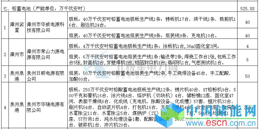 中國儲能網訊:根據國務院《關于進一步加強淘汰落后產能工作的通知》(國發(fā)〔2010〕7號)及工業(yè)和信息化部《關于下達2014年工業(yè)行業(yè)淘汰落后和過剩產能目標任務的通知》(工信部產業(yè)〔2014〕148號)要求,并結合實際,福建省人民政府下達2014年淘汰落后和過剩產能目標任務的通知,其中將淘汰鉛蓄電池極板399.88萬千伏安時、鉛蓄電池組裝126萬千伏安時。詳情如下: