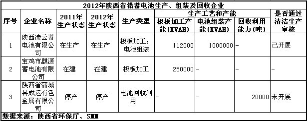 中國儲能網(wǎng)訊:近日,陜西省環(huán)保廳公布省內(nèi)涉鉛蓄電池生產(chǎn)、組裝、回收企業(yè)情況。共涉及三家企業(yè)中,其中一家在生產(chǎn)、一家在建、一家停產(chǎn)。