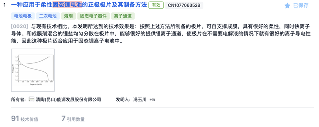 圖4:《一種應(yīng)用于柔性固態(tài)鋰電池的正極極片及其制備方法》發(fā)明文獻(數(shù)據(jù)來源:智慧芽)