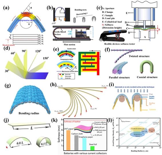該綜述從電極的柔性化、電解質(zhì)的固態(tài)化、器件結(jié)構(gòu)和機械柔性的表征等方面系統(tǒng)的介紹和分析了柔性固態(tài)水系電池。如圖2所示,首先分析了柔性固態(tài)水系電池的器件結(jié)構(gòu)(平面三明治結(jié)構(gòu)、平面插齒結(jié)構(gòu)和纖維狀結(jié)構(gòu))及設(shè)計原則,詳細介紹了機械柔性的表征儀器和測試參數(shù)。隨后,重點介紹不同離子柔性固態(tài)水系電池的最新研究進展。最后,對柔性固態(tài)水系電池目前存在的挑戰(zhàn)進行了闡述,并從能量密度、穩(wěn)定性、儲能機理、導電性、多功能性、測試標準、可穿戴性和大規(guī)模制備等方向?qū)ξ磥淼陌l(fā)展進行展望。