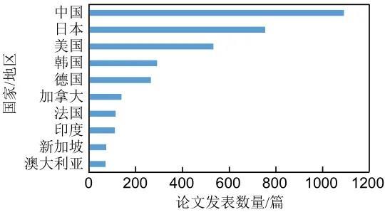 圖4 全球全固態(tài)鋰電池技術(shù)論文發(fā)表量前十的國家/地區(qū)