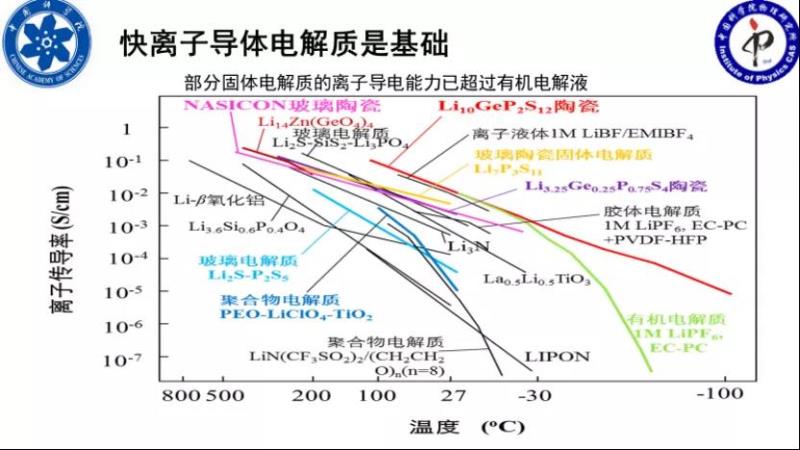 全固態(tài)電池能夠走到今天熱起來,是因為大家看到了希望,就是說固態(tài)電解質有了長足的進步。今天一部分固體電解質,它的離子導電能力已經(jīng)遠超今天的有機溶劑電解液,這是幾十年來發(fā)展的很大的進步,我1988年到物理所跟陳老師做固態(tài)電池。那個時候沒有這么好的電解質,那時候美國也在做硫化物,后來楊原老師把這個東西帶到物理所,也在物理所整硫化物,但是那個時候的離子電導率沒有今天這么高。今天電解質的電導率高到這個程度,特別是低溫情況下比有機電解液好很多,那有沒有可能做出寬溫區(qū)工作和功率性能更高的固態(tài)電池?